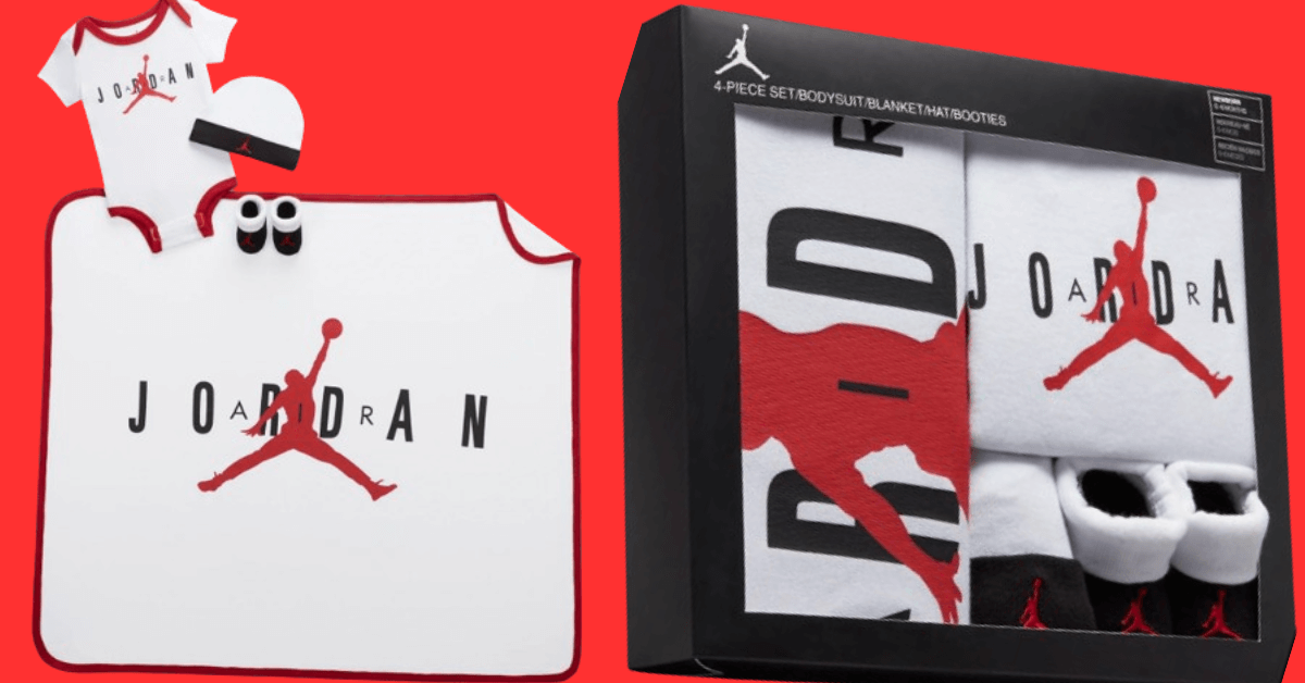 Introducing the Air Jordan Set, comprising a short-sleeve bodysuit, beanie, booties, and a practical changing blanket, all adorned with coordinated designs on soft knit fabric for enduring, cozy comfort throughout the day. The bodysuit’s lap shoulders and snap closures at the bottom hem simplify the process of changing and dressing. The beanie and booties are equipped with foldover cuffs, ensuring a snug and secure fit. Crafted from 100% cotton, the bodysuit, beanie, and blanket provide a gentle touch, while the booties boast a composition of 62% cotton, 34% polyester, and 4% elastane.