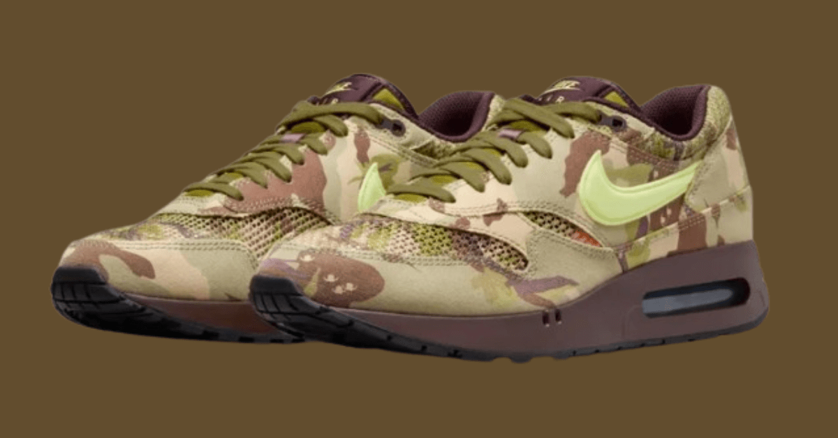 The iconic Nike Air Max 1, the first shoe to showcase Nike Air technology to the world, gets a fresh camo update. This edition, the Air Max 1 ’86, features camo canvas overlays paired with open-hole mesh, providing a breathable and flexible experience. The painted Earth midsole perfectly complements the Light Lemon Twist branding, creating a striking balance. Combined with the signature cushioning and the classic wavy mudguard, it’s clear why this shoe has maintained its legendary status for so long.