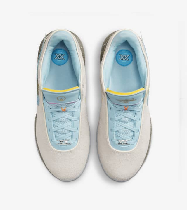 The LeBron XX x UNKNWN “Message in a Bottle” represents the seamless transition of the game from one generation to the next. Paying homage to UNKNWN’s inaugural store in Miami and the brand’s core value of teamwork and perseverance learned through sports, this design features a plush sandy suede and Ocean Bliss accents that symbolically unite different realms. The story unfolds here, both on the court and in the urban landscapes, effortlessly drifting between us. With its lightweight construction, low-to-the-ground profile, and exceptional cushioning, this shoe empowers you to dominate the forthcoming era of basketball. So go ahead, unlock the box, and embrace what lies within.