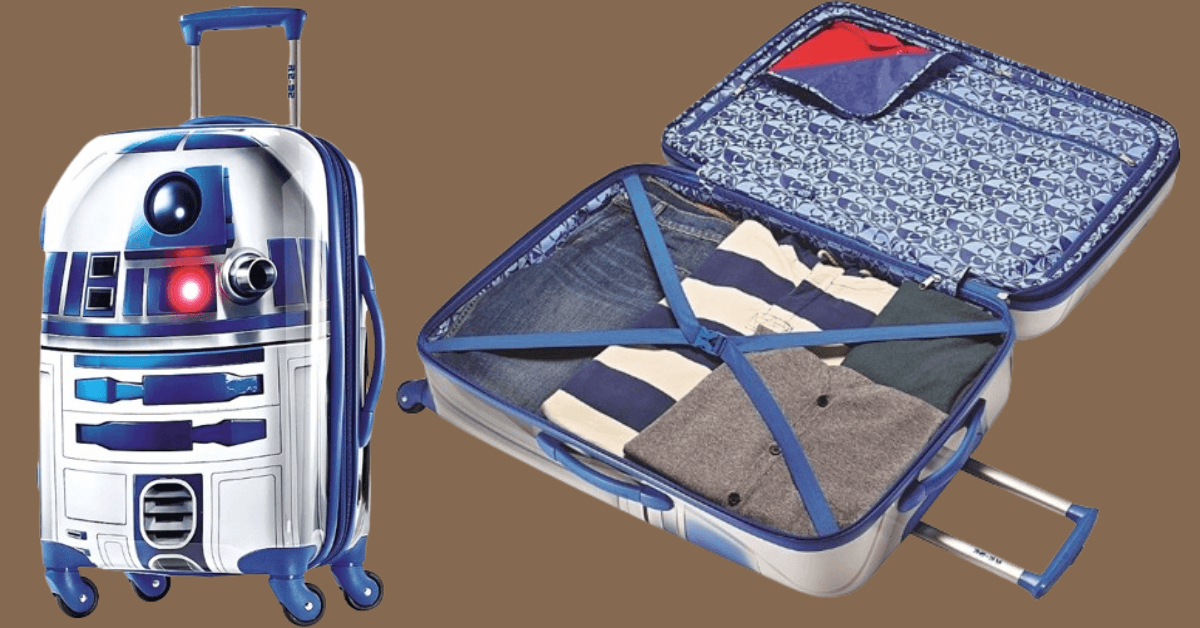 Harness the Force to carry your travel essentials with this 21-inch American Tourister Star Wars R2-D2 hardside suitcase. Designed for effortless mobility, it features single spinner wheels and a push-button handle, while retractable top and side carry handles stay protected during baggage check. The durable ABS plastic exterior ensures longevity, and the fully lined interior includes crisscross tie-down straps to keep your clothing securely in place.