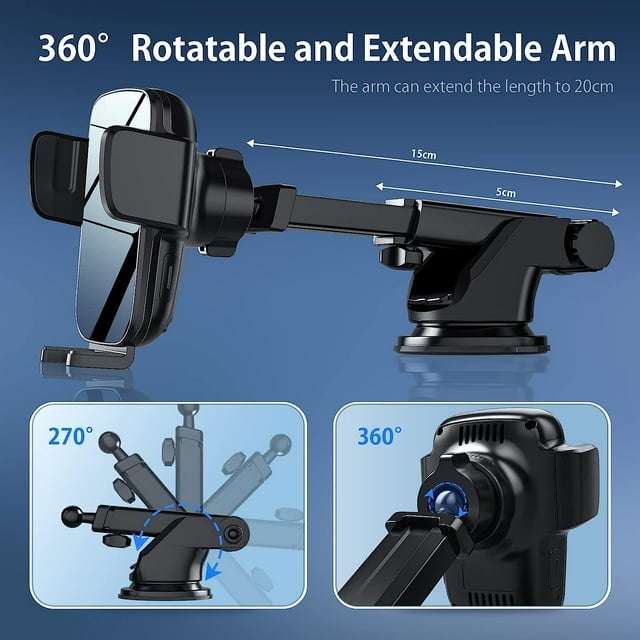 Crafted with precision, this device features a swivel ball joint that offers a complete 360-degree rotation, allowing you to effortlessly pivot and position your smartphone in horizontally, vertical, or virtually any desired angle. This design not only enhances your viewing experience but also promotes safe driving practices. Utilizing the latest standard and incorporating a built-in smart chip, it boasts the power of 3rd generation-reinforced copper coils, ensuring lightning-fast charging capabilities. For Qi-enabled Galaxy phones, it delivers an impressive 15W fast charging speed, while Qi-enabled iPhones receive a rapid 10W charge. Other Qi-enabled wireless charging devices can expect a reliable 5W charge (Please note: A QC3.0/2.0 car charger is required for 10W/7.5W fast charging). This multifunctional car phone holder is a 3-in-1 marvel, designed with durability in mind. Constructed using high-quality airliner PTFE PC material, it offers secure mounting options on the dashboard, windshield, or air vent, providing a stable and versatile solution for your smartphone needs.